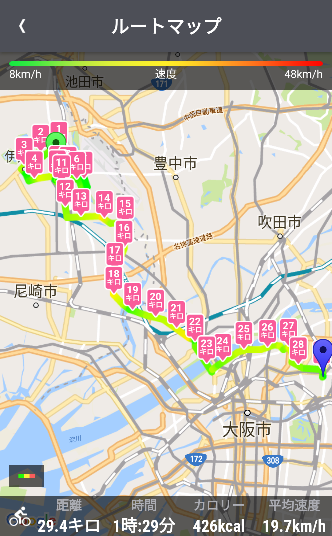 かく懇親会までに視走 左上(R171側)にかけて勾配昇 扇状地for伊丹